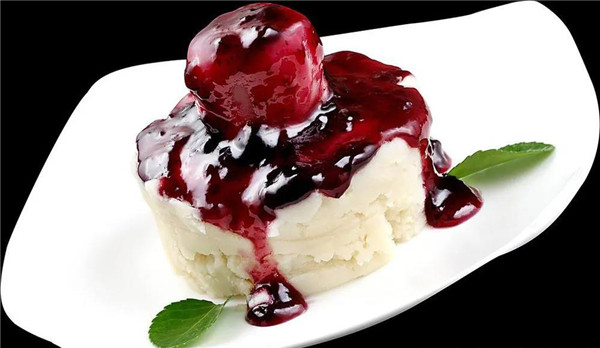 蓝莓土豆泥是以土豆、牛奶、蓝莓果酱为主材的菜肴名。