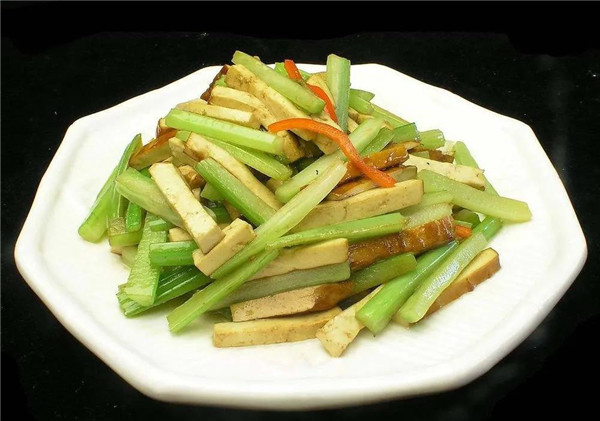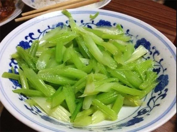 凉拌芹菜是一道爽口凉菜,简单好做,又好吃。民间一直都说芹菜对糖尿病和高血压有很好的辅助治疗效果呢。同时,由子芹菜中富含水分和纤维,并含有一种能使脂肪加速分解、消失的化学物质,因此是减肥佳品。