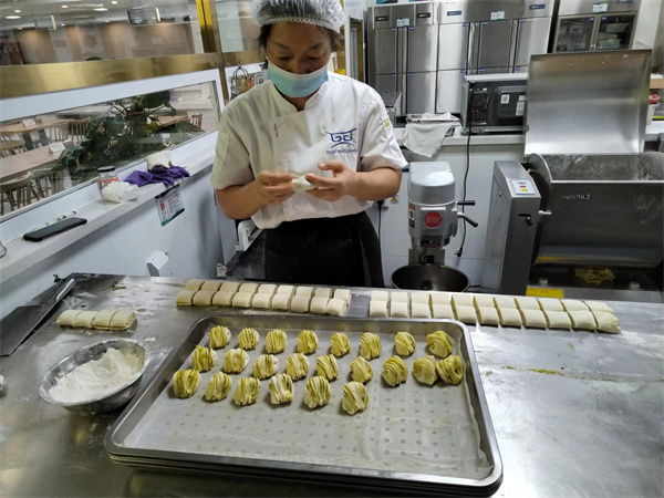 姚英身兼数职,既是凉菜主管,又是食品安全员,同时要协助切配主管打单子。工作起来不分白天黑夜,有的时候半夜因甲方需求打单子,就快速起身操心发单的工作。经常都是大家准备睡觉了,甲方临时有用餐需求,她便立刻换好工作服,迅速准备所需菜品。她总是毫无怨言、认真负责,兢兢业业地做好工作。