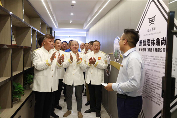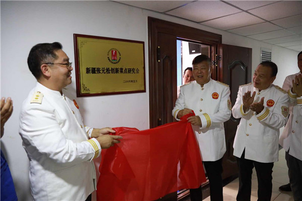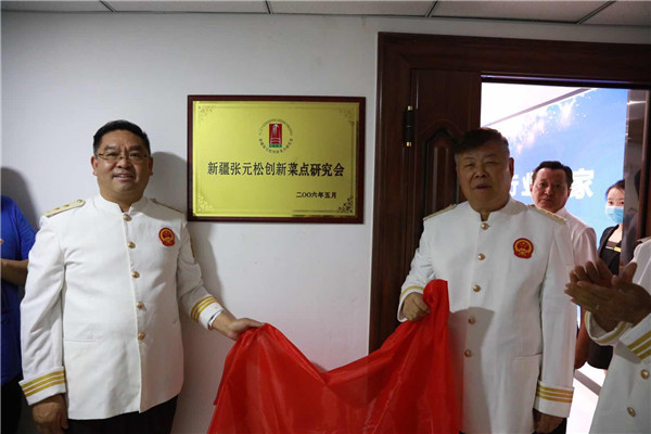 专家和嘉宾们在集团公司总经理、现任“张元松创新菜点研究会”会长白玉清、常务副总经理赵建国的陪同下,参观了公司新的办公场地,听取了乌鲁木齐分公司总经理白梓呈对“塔林鼎尚”发展历程的介绍。在现场30多位餐饮专家和嘉宾们的注视下,张元松大师和白玉清总经理携手揭开覆盖在“标牌”上的红绸,现场掌声雷动,标志着“新疆张元松创新菜点研究会”正式落地“塔林鼎尚”。