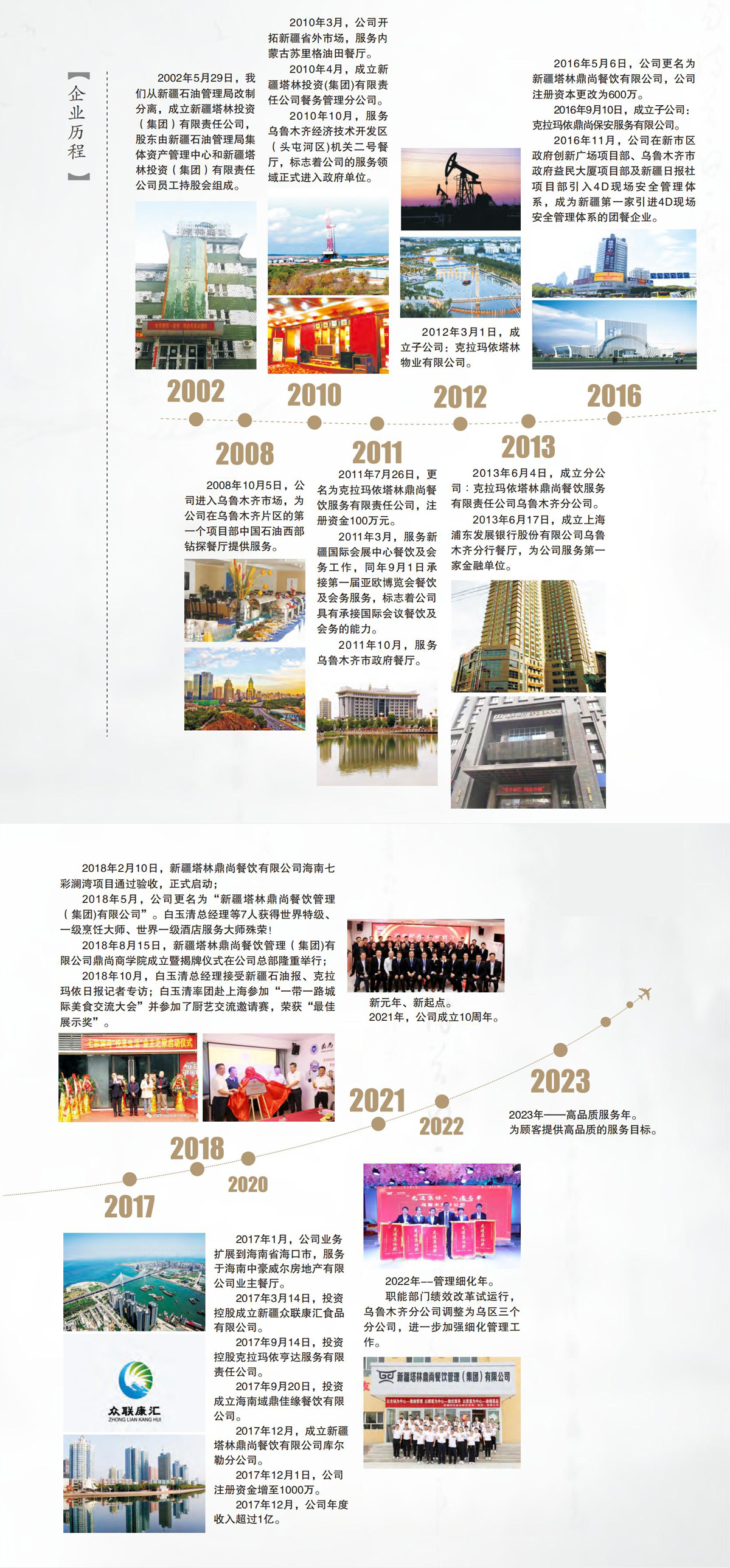 德信平台_德信(中国)一站式服务平台为原“中石油新疆石油管理局”改制下属企业,注册资金2222万元,公司有投资公司6个,分公司11个,业务遍及新疆各地,是新疆餐饮龙头企业,全国团餐百强企业。2024年集团总体营收4.5亿元,集团本部近3年上缴税金2900余万元,为本地财政做出了突出贡献。